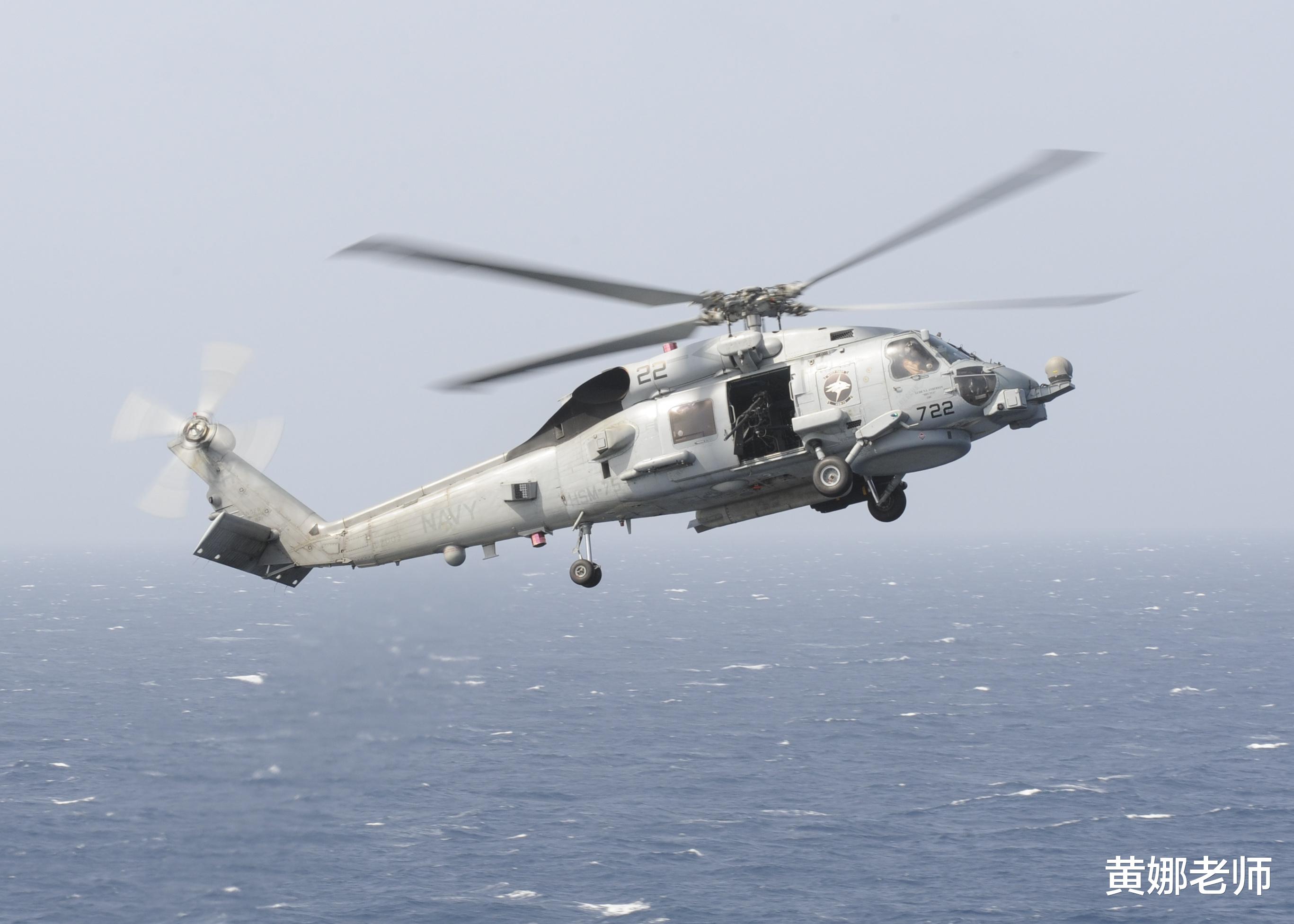 MH-60R“海鹰”直升机,配备先进雷达和声呐系统,造价约4000万美元。主要负责反潜、反舰、搜索救援、运输补给等多种任务。