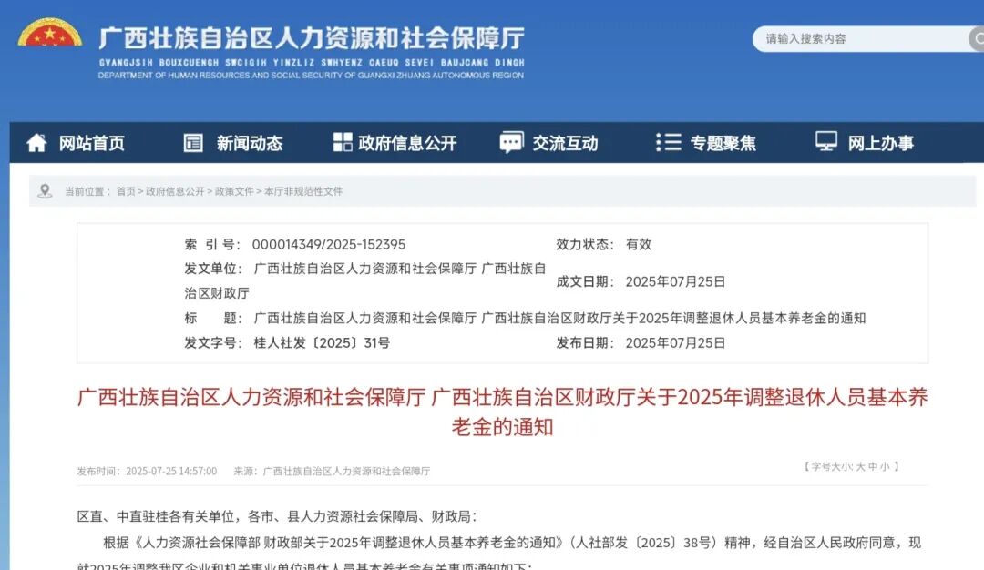 3.以广西发布的2025年调整退休人员基本养老金的通知为例。