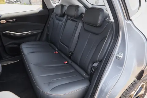 从乘坐空间来看,虽然吉利银河星舰 7 EM-i 车身更长更宽,但实际乘坐感受与宝骏云海差别不大。宝骏云海轴距 2750mm,后排腿部空间非常宽敞,身高 1 米 8 的乘客坐进后排,膝盖离前排座椅还有两拳距离,头部空间也很充裕,不会有压抑感;即使后排同时坐三个成年人,也不会觉得拥挤,中间乘客的腿部和头部空间都能得到保证。