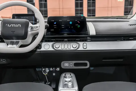 最后加7000元来到301公里臻爱米,限时售价是5.59万,这个版本使用的是一块28.08度宁德时代磷酸铁锂电池,CLTC纯电续航301公里,零到50加速时间是6.2秒,座椅采用皮质混搭材质的。