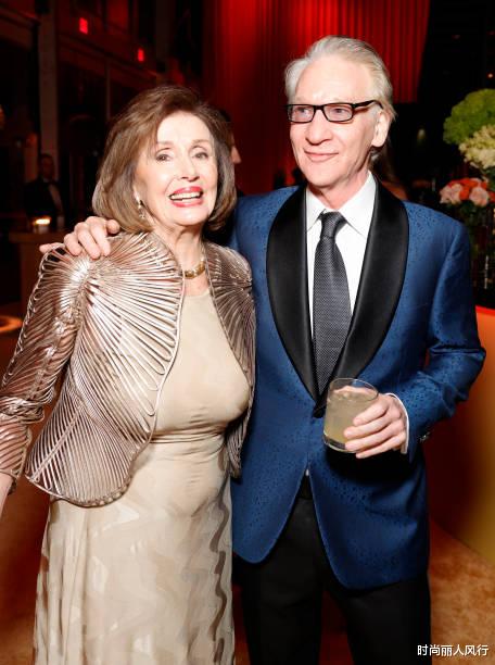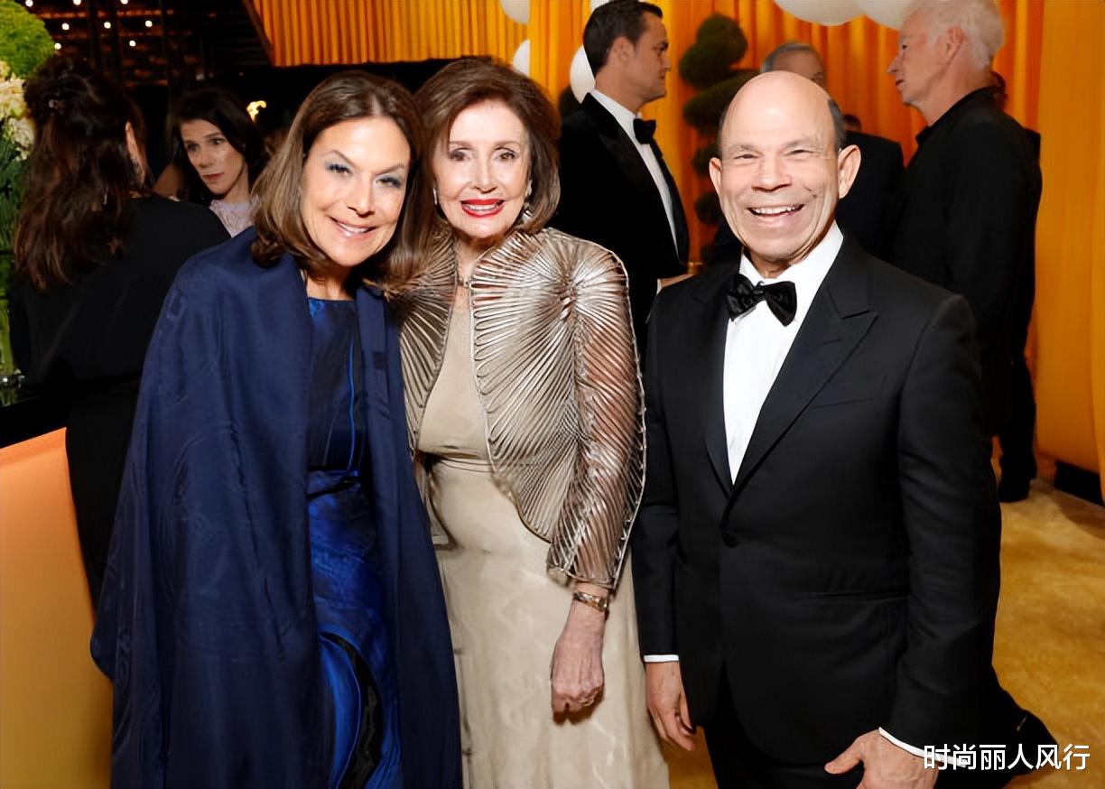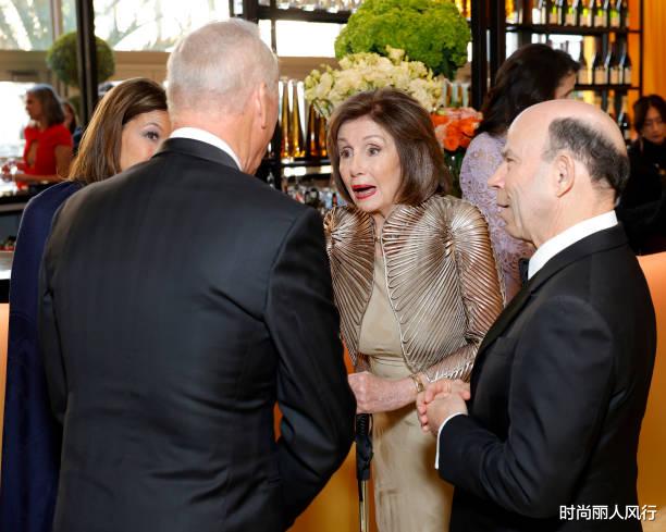 84岁佩洛西也去奥斯卡了!穿金色礼服裙涂大红唇很闪,真是不服老