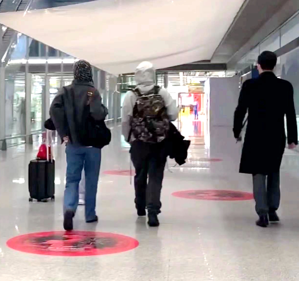 该名网友跟“锋菲”一同下飞机,还拍了好几张两人的背影照。
