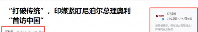 1.环球网:《“打破传统”,印媒紧盯尼泊尔总理奥利“首访中国”》-2024-11-27