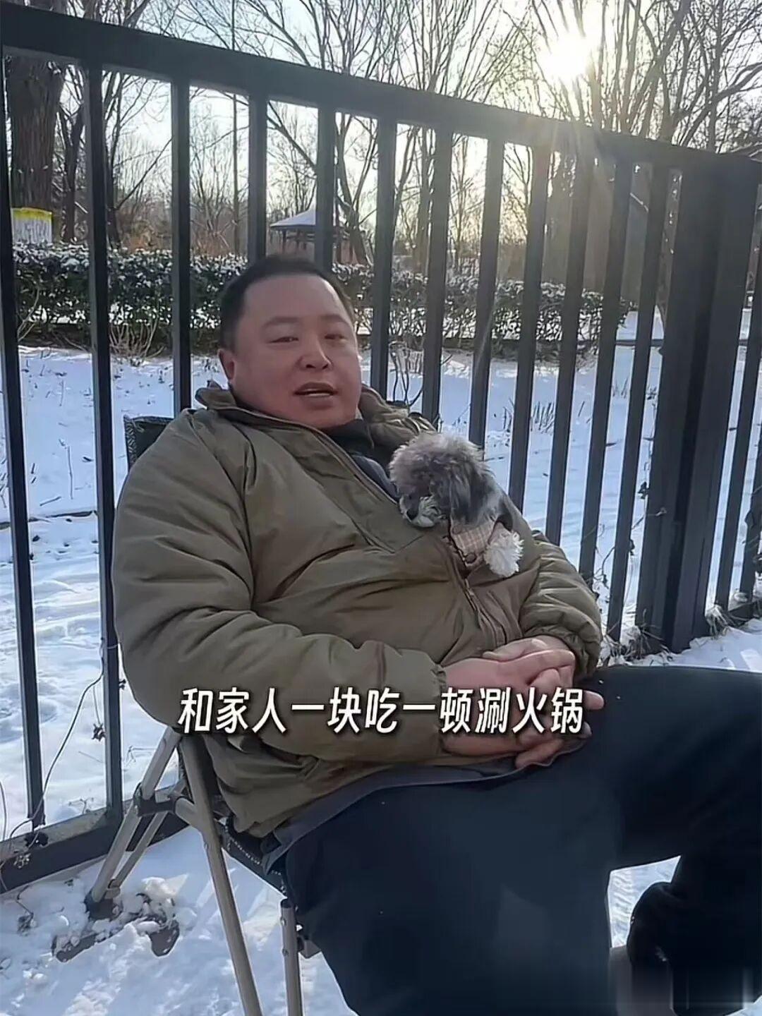 堆完雪人,火锅的肉也煮熟了。阎鹤祥对着镜头感慨一番,北京的冬天虽然很难受,但是,也有值得珍惜和享受的地方,就是下雪的时候,抱着狗和家人一块吃一顿涮火锅,太开心了。