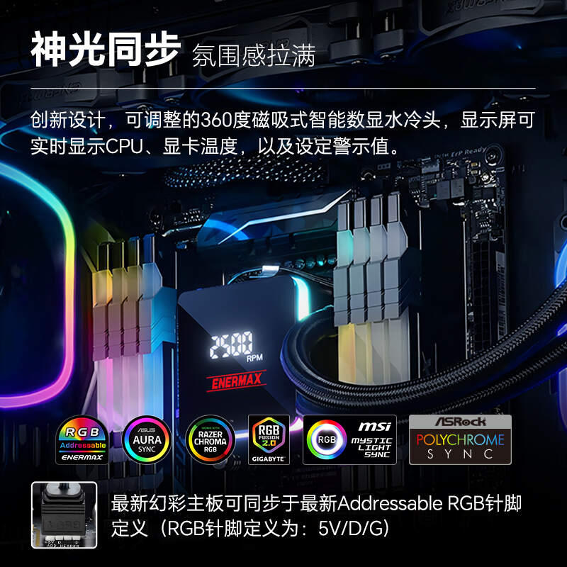 水冷散热器的优势在于其高效的热交换能力,能迅速将CPU产生的热量传递到冷排中,再通过风扇进行散热,从而有效降低处理器温度,避免温度过高造成的降频或系统不稳定。