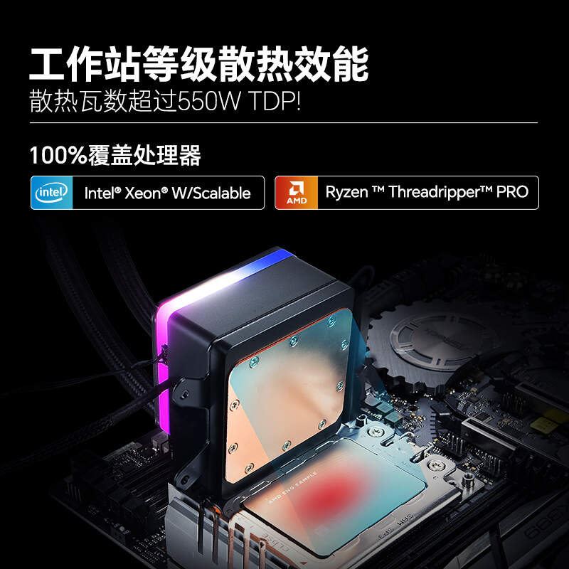 为了提升兼容性,XTR360 幻彩锐龙散热器支持包括Intel和AMD多个平台,能够100%覆盖Intel®Xeon®。AMD锐龙 Threadripper PRO 9000 WX系列处理器自然也在覆盖范围内。