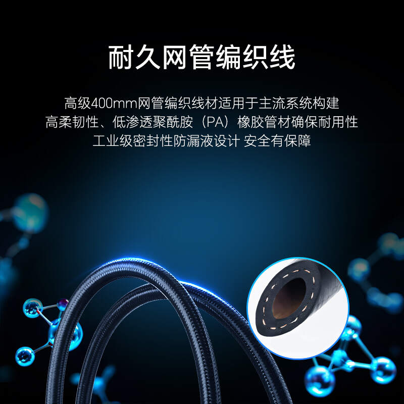 耐用性与静音性能散热器在长时间高负载运行下的耐用性至关重要,安耐美XTR360 幻彩锐龙 一体式水冷散热器采用了高质量的材料,如耐高温、耐腐蚀的铝合金冷排,以及精密加工的水泵和工业级密封性防漏液设计的耐久网管编织线,确保了水冷系统的长期稳定运行。同时,双滚珠轴承风扇相对来说噪音比较小,即使火力全开,也仅有32db。