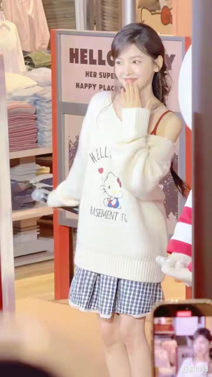 在此基础上,她的脸型又融入了心形脸(也叫倒三角脸)的特征。这主要体现在她收势急且尖俏的下巴上。虽然她的下巴不是那种非常尖锐的“V”形,但相较于传统鹅蛋脸更圆润的下巴,她的下巴线条收得更紧,显得非常精巧。这为她的甜美中加入了一丝精致和少女的灵动感。