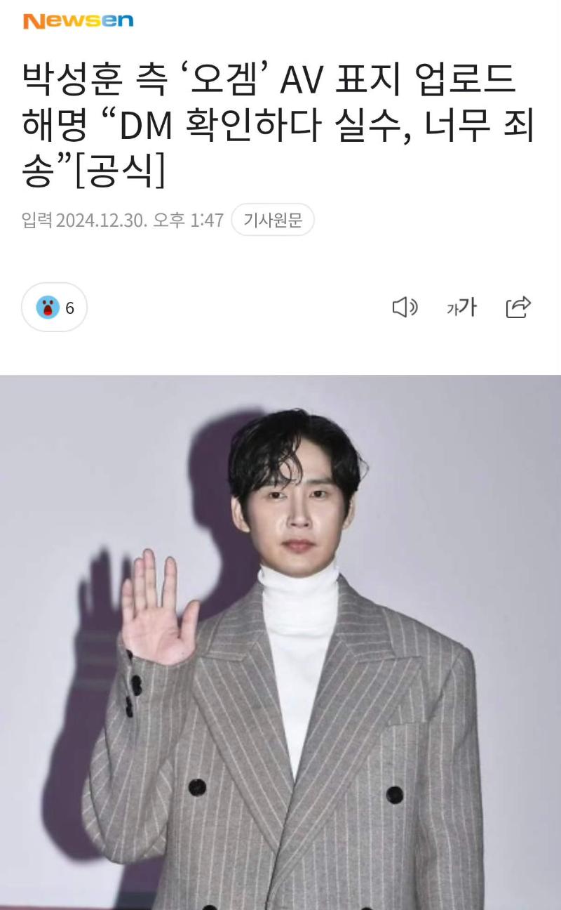虽然朴成焄火速秒删,但还是引起全网热议,随后其经纪公司出面澄清,朴成焄收到了很多私信,在确认私信时不小心上传了,并称朴成焄本人也非常惊讶,对出现这样的失误感到非常抱歉。