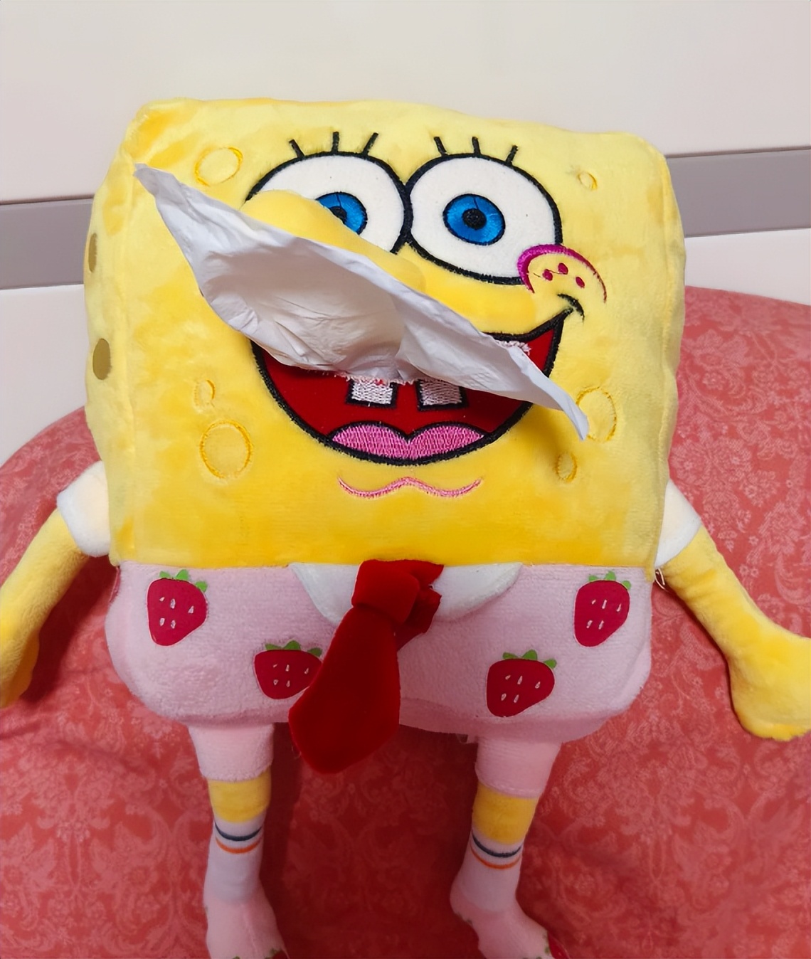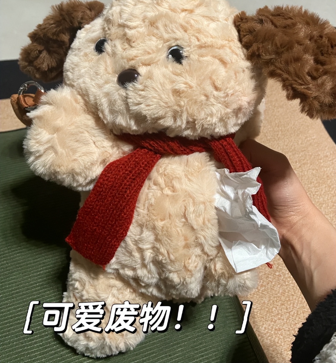 先把毛绒玩具拆开,再把毛绒玩具里面的棉花全都掏出来,再把纸巾塞进去,毛绒玩具的开口不用缝合,这不就是网上大几十的纸巾盒吗?