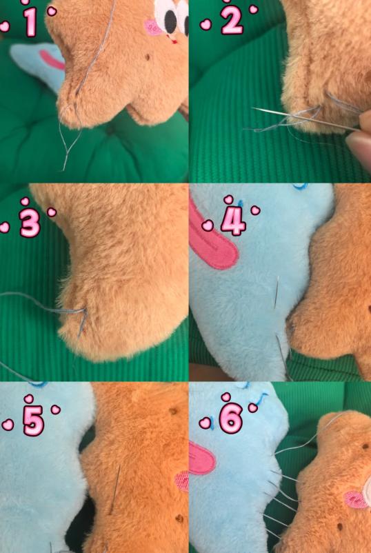 做法也很简单,就跟刚才缝靠垫一样,把每个毛绒玩具依次缝起来就搞定了。