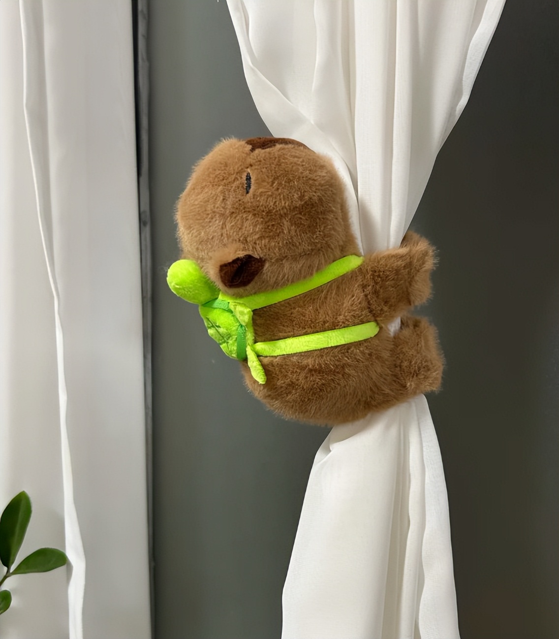 简单改造一下,毛绒玩具就变成了绑窗帘的好物,用它绑窗帘既可爱又方便。