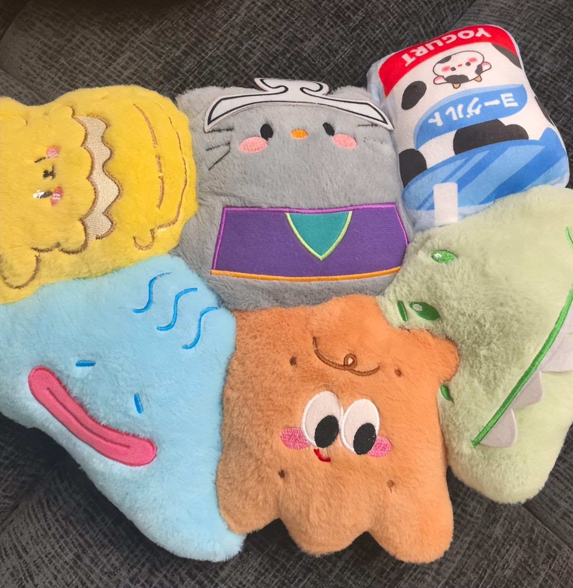 把这些毛绒玩具缝好之后,平时可以放在椅子上或者直接放在床上,靠着很舒服,根本不用额外买靠垫了。