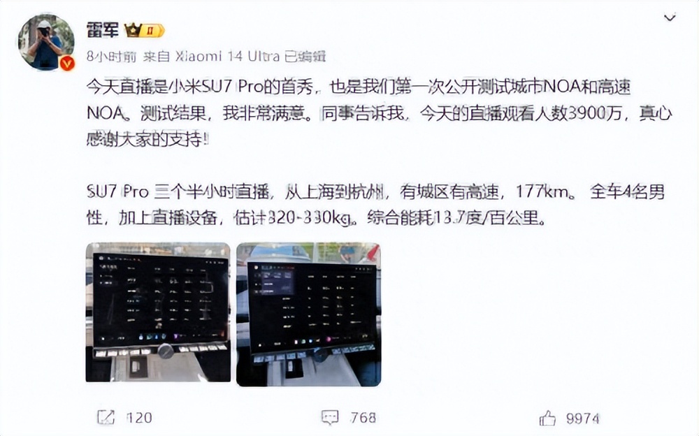 在去年的一场测试小米SU7 Pro的真实续航和真实能耗表现直播中,雷军的热度让所有汽车行业感受到了前所未有的压力。