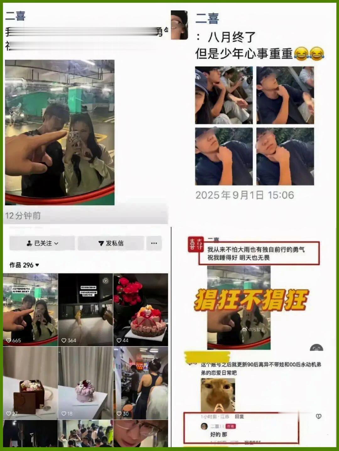 而在评论区下方,有网友留言建议二喜将账号修改为“90后离异不带娃的女子和00后永动机的恋爱日常”。二喜竟然留言大言不惭地回答说:那就听你的。