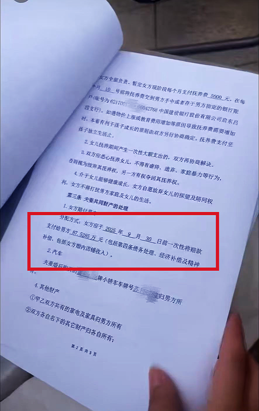 曝光的离婚协议显示,两人在婚后,二喜的丈夫一共给二喜的现金转账金额高达87万元。