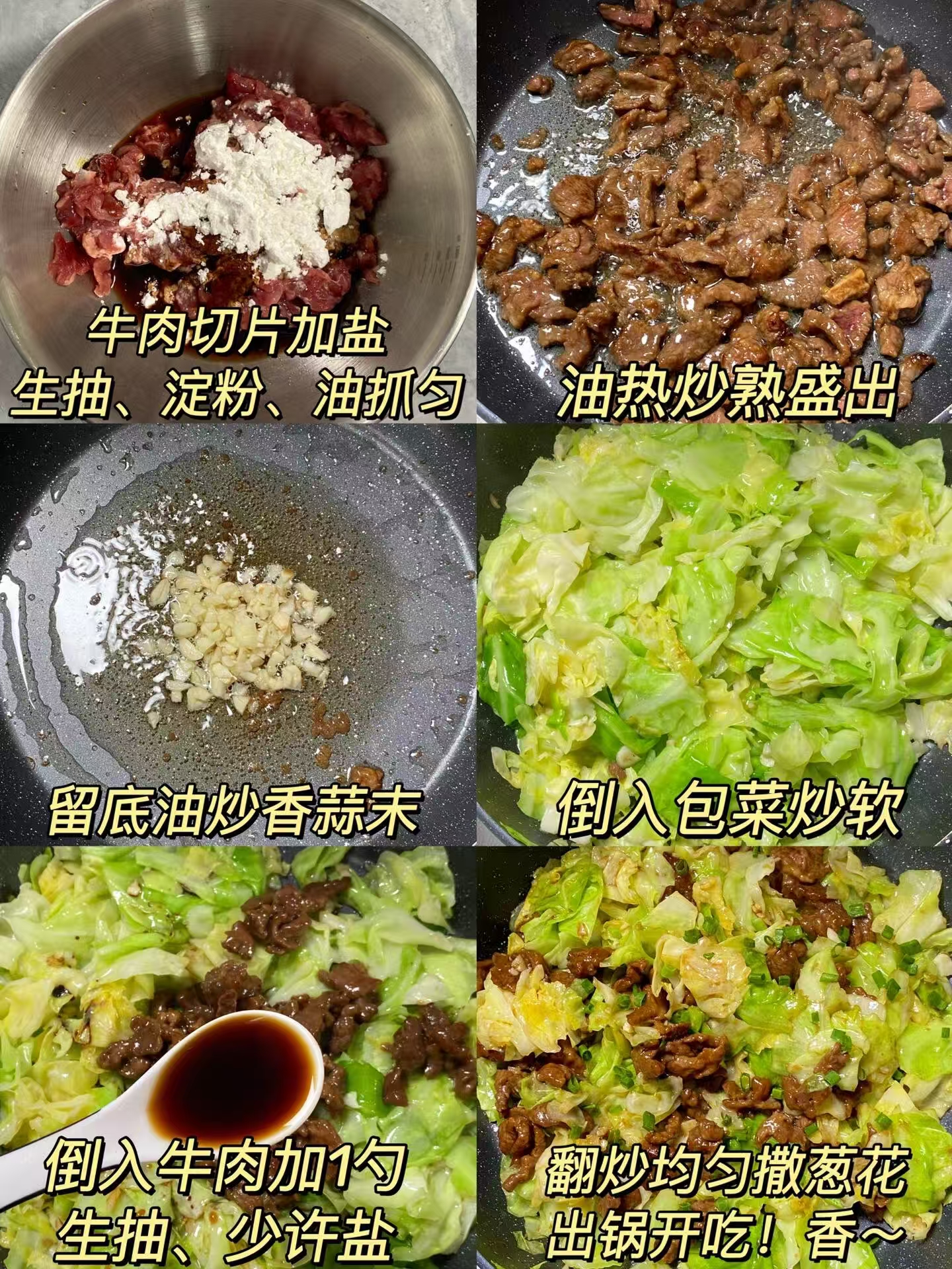 👉 小贴士:牛肉逆纹切是关键,口感更嫩不柴;全程大火快炒,减少食材吸油,保持低脂;包菜别炒太久,保留脆爽口感和膳食纤维。