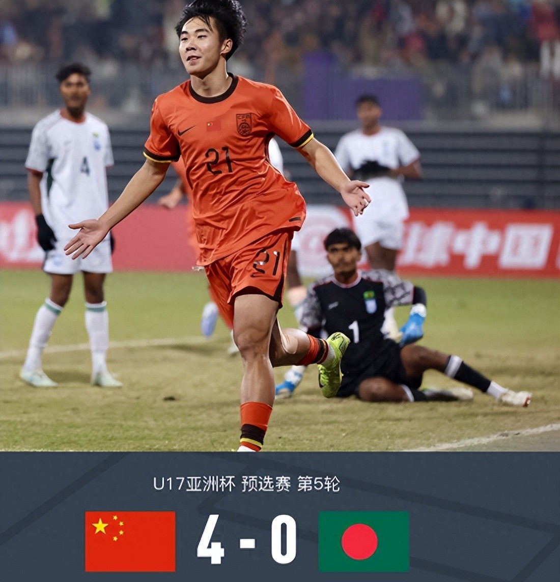 果然,U16国足没有让中国球迷失望,激战90多分钟后,U16国足延续前4轮的高光状态,以4:0的大比分大胜孟加拉国,以小组第一杀进亚洲杯正赛。此役,表现最高光的自然是独中三元上演帽子戏法的帅惟浩。