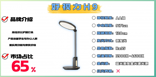 儿童护眼灯什么牌子的好?好视力H9整体采用ABS塑料材质,灯柱位置配有独立小夜灯,只需轻触功能键即可开启,夜间使用更方便,其18.5厘米直径的环形发光面结合微米级导光板设计,能均匀覆盖约1米桌面,光线柔和无眩光,均匀度高达1.78,光源部分采用仿生双芯片技术,能精准还原物体色彩,并且可根据需求自由切换3900K或4600K色温,并设有小夜灯助眠模式,不过在强光环境下,边缘光线仍可能略有不均。