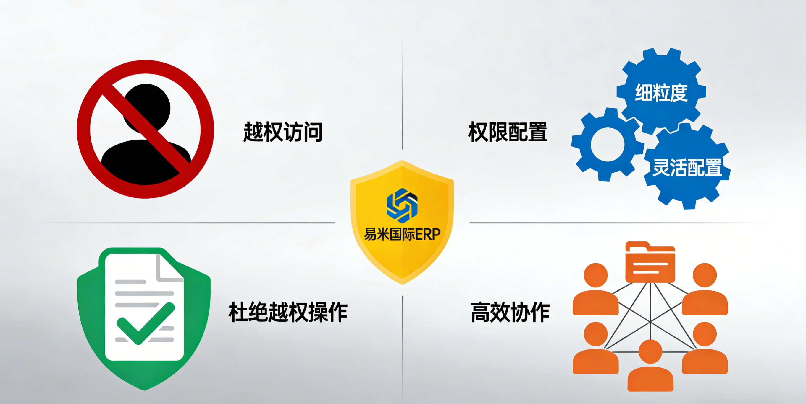 易米国际ERP从架构设计之初,便将 “数据安全与合规” 视为基石,构建了一套多层次、细粒度、可灵活配置的严密权限管控体系。它遵循“按需可知,最小授权”的黄金原则,确保数据在充分共享以支持高效协作的同时,能被严格保护,杜绝任何越权访问与操作。