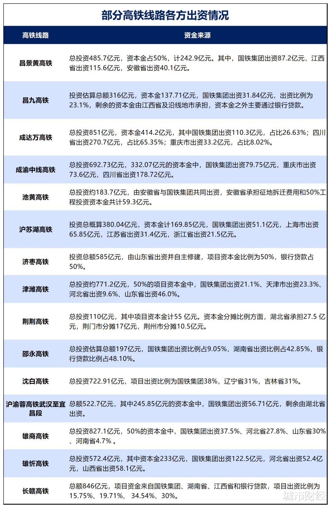 比如2023年年末开通并让江西成为全国首个市市通350公里高铁的昌景黄高铁,总投资485.7亿元,资本金占50%,计242.9亿元。其中国铁出资87.2亿元,江西省出115.6亿元,安徽省出资40.1亿元。