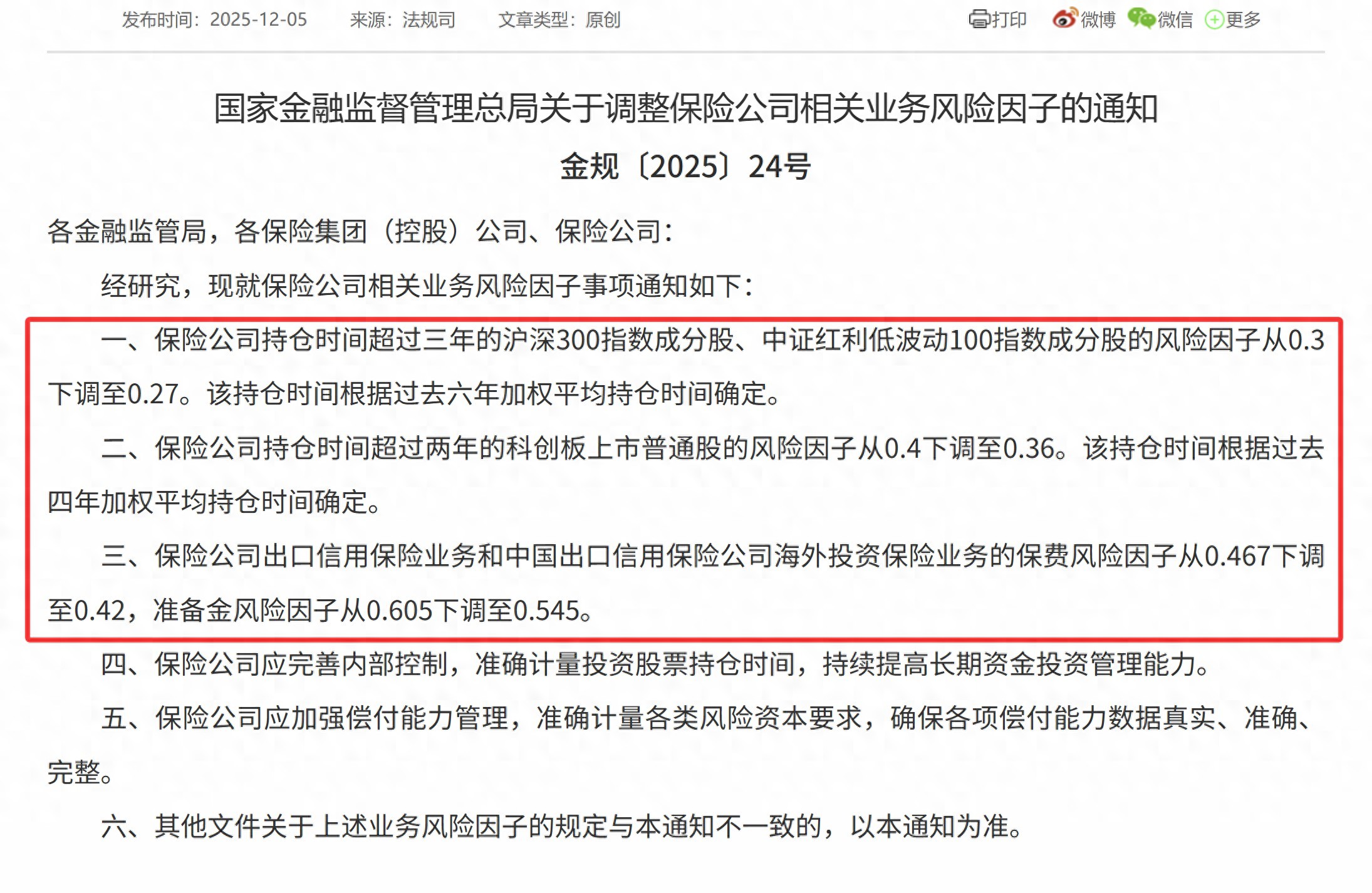 金融监管总局近日下调了股票资产的风险因子,这意味着,保险公司投资A股的“敞口”被大幅打开!简单来说,就是监管层降低了股票在保险资金配置中的“风险权重”,让保险公司可以更放心、更大比例地买入A股,尤其是沪深300、中证红利100、科创板等核心资产。