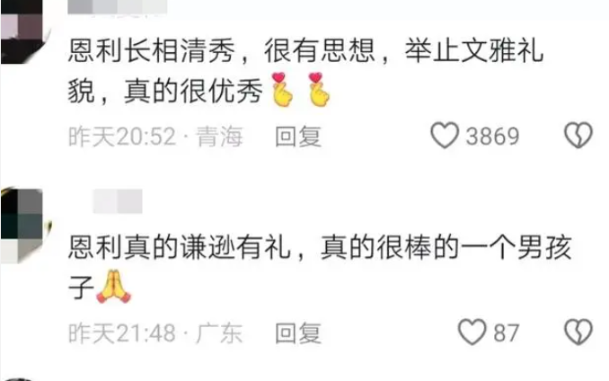 换作是其他星二代,真不一定能够对待其他人如此有礼貌,而恩利恰恰相反,他从来没有因为父母的身份就对他人傲慢。
