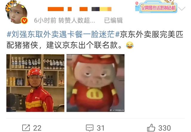 东哥送外卖的照片曝光后,竟让#京东外卖服 猪猪侠#冲上热搜,谁能想到,一场严肃的商业竞争,最后竟演变成全网玩梗大赛?