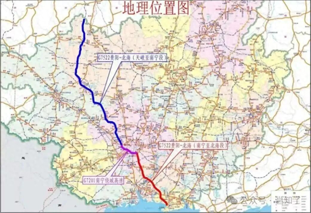 而贵阳至北海,这一条是G75兰海高速的并行线,北起贵州贵阳,南至广西北海,途经黔南州、河池市、百色市、南宁市、钦州市等,共分两省(区)9个路段建设。