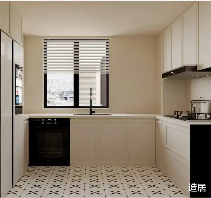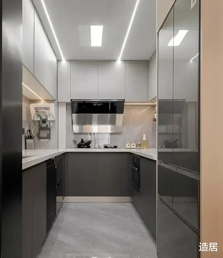 在 2025 年厨房设计潮流中,嵌入式柜体成为了众多家庭的心头好。倘若厨房空间条件允许,建议打造一个专属的嵌入式柜体。你可以将烤箱、微波炉、电饭煲等体积偏大的厨电巧妙嵌入其中。