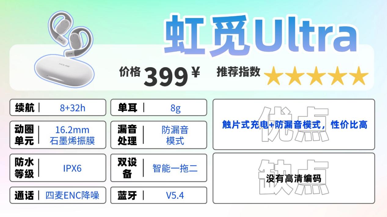 虹觅Ultra极为全能,全能型耳机,不论是佩戴,音质或者性能,表现都非常不错,综合来看性价比超高。