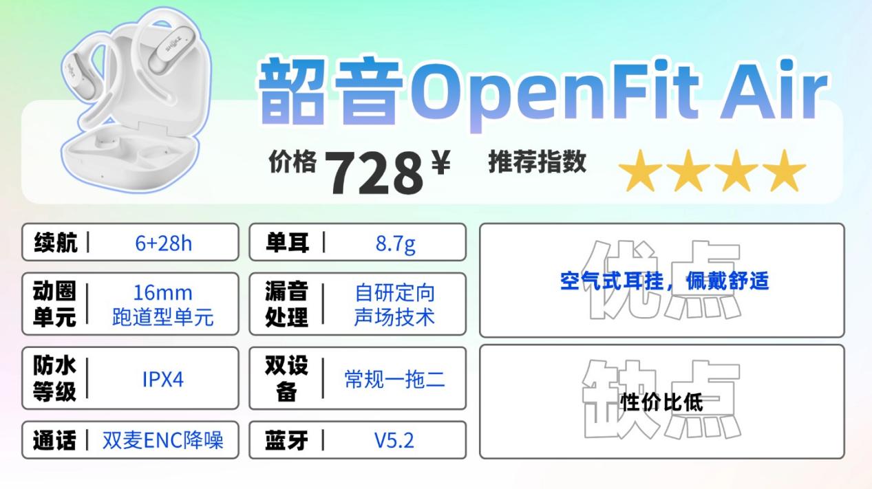 韶音Open Air佩戴舒适,适合小耳朵,但是性价比比较一般。