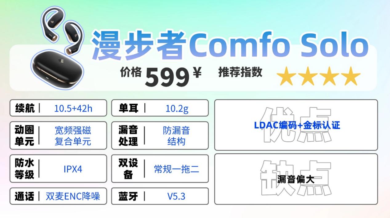 漫步者Comfo Solo这款支持LDAC编码,如果你的设备支持,可以入手这款。