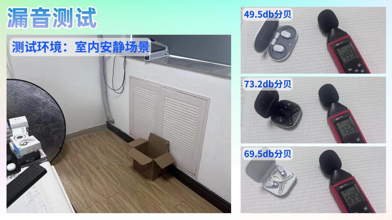 韶音Open Air:耳机在漏音的控制表现上尚可,实测耳机最大音量的漏音分贝约为69.5dB,耳机在漏音控制能力方面有待提升。