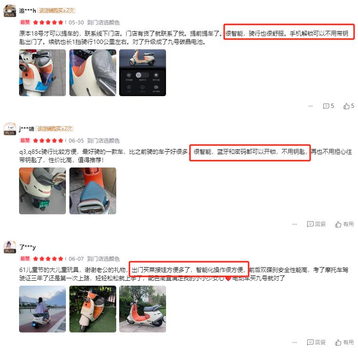 从某东平台看,九号电动Q3 85c的买家评价200+,好评率高达100%;爱玛露娜Pro买家评价200+,好评率为97%。今天就从外观、智驾、智能体验几大维度,从用户评价中深入了解下这两款备受女性关注的两轮电动车。
