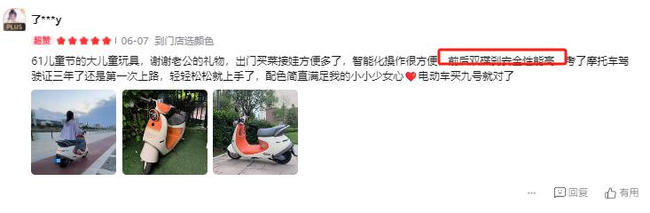 还有真实用户这样评价九号电动Q3 85c:“智能化操作很方便,前后双碟刹安全性能高”!九号电动Q3全系标配CBS+TCS+前后双碟刹,刹车轻松捏,车辆自动分配前后刹车制动力,让刹车更稳更安全。