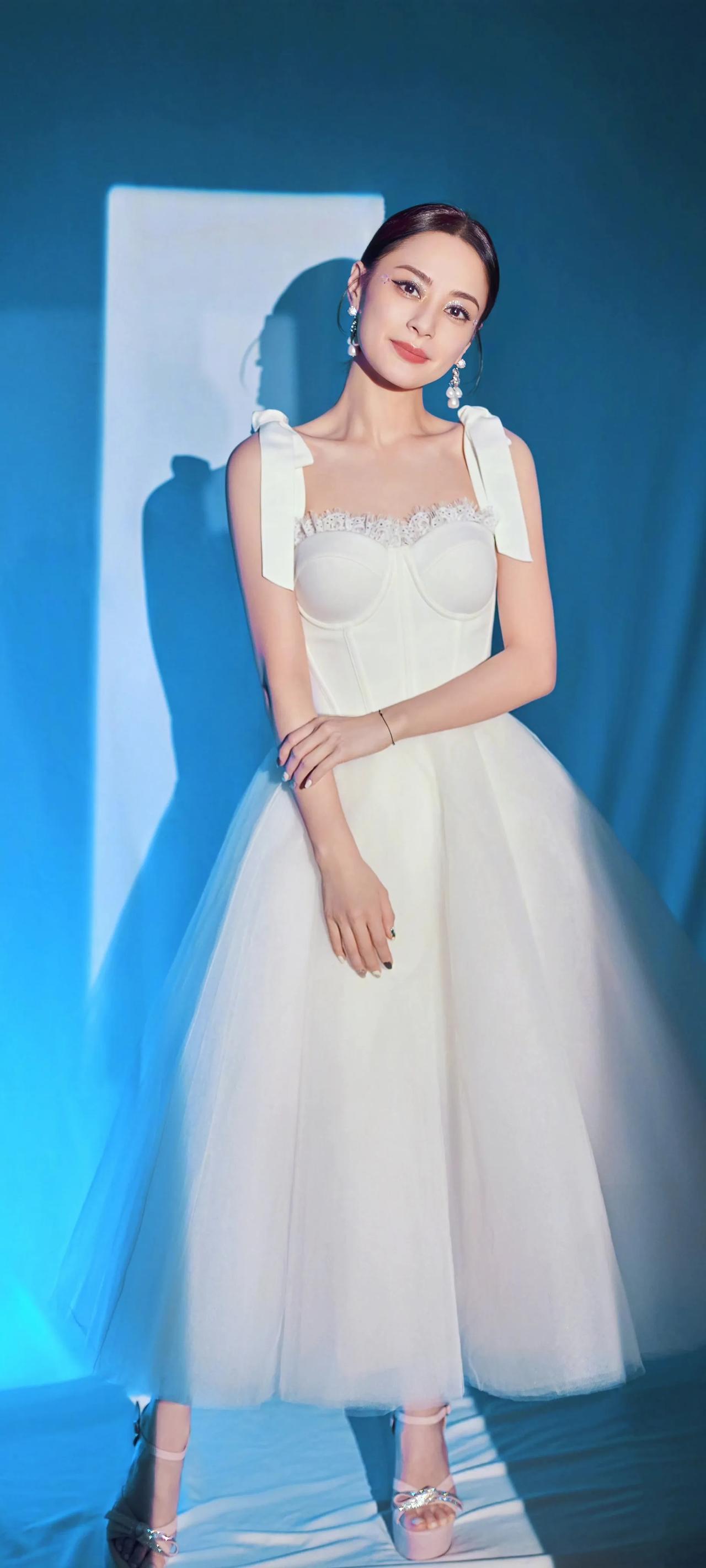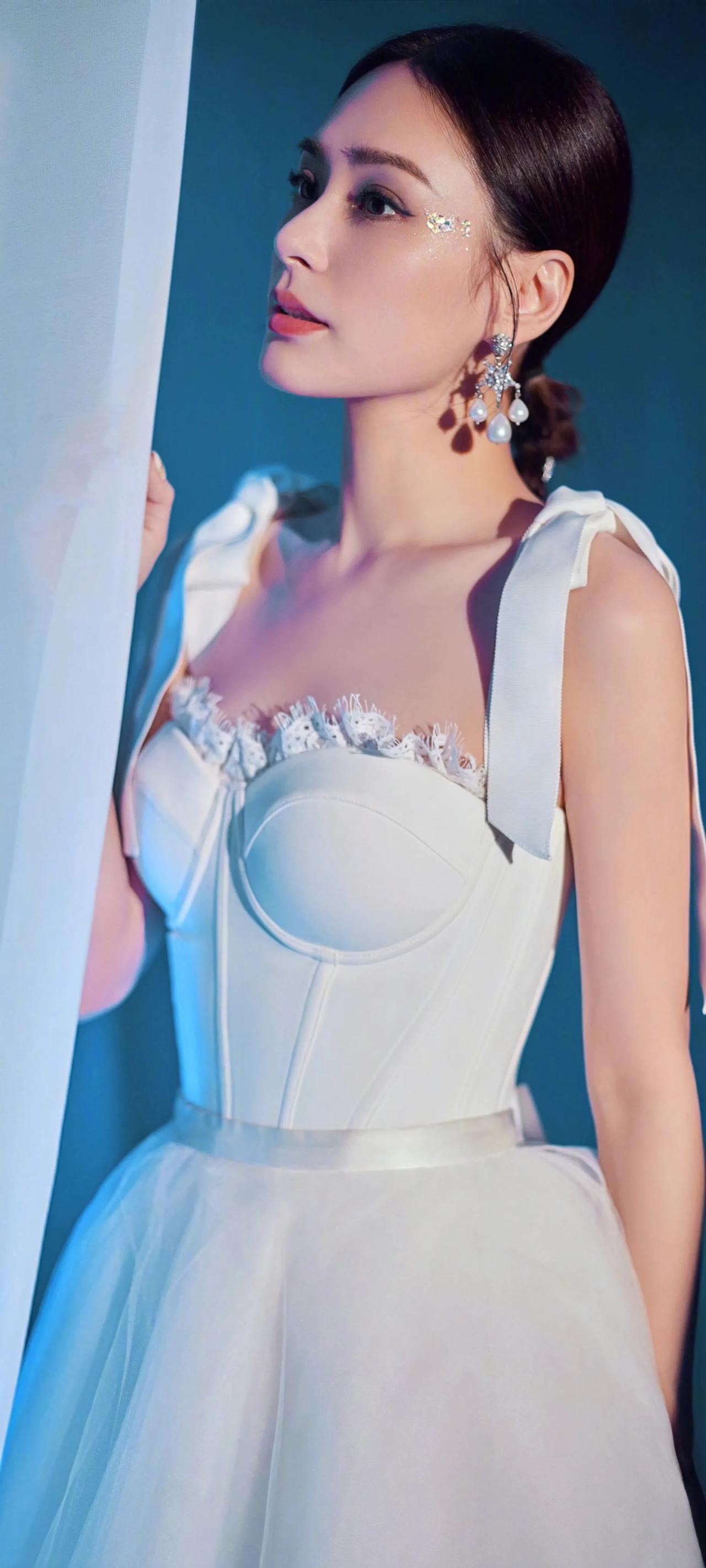 钟欣潼高清壁纸,白色吊带裙美美