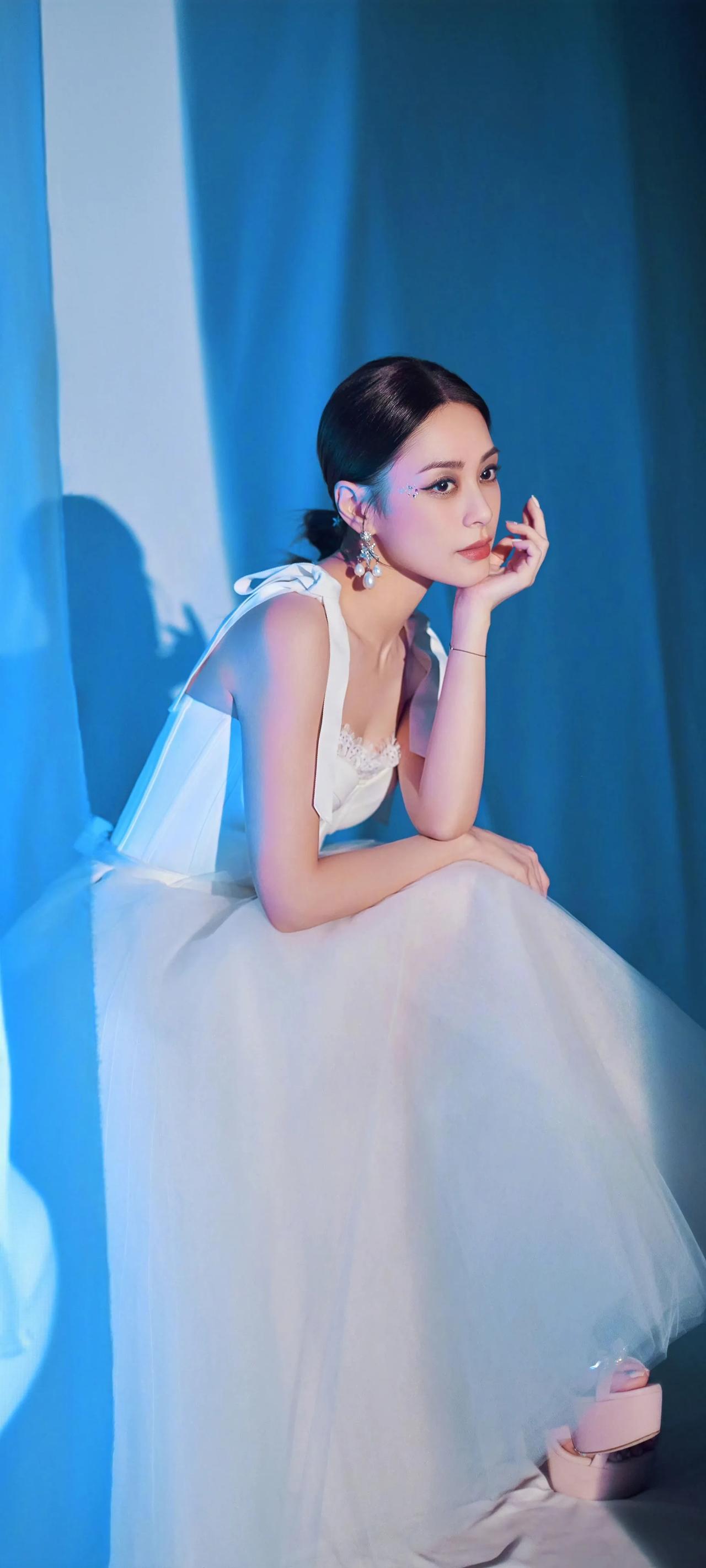 钟欣潼高清壁纸,白色吊带裙美美哒。 钟欣潼 娱乐