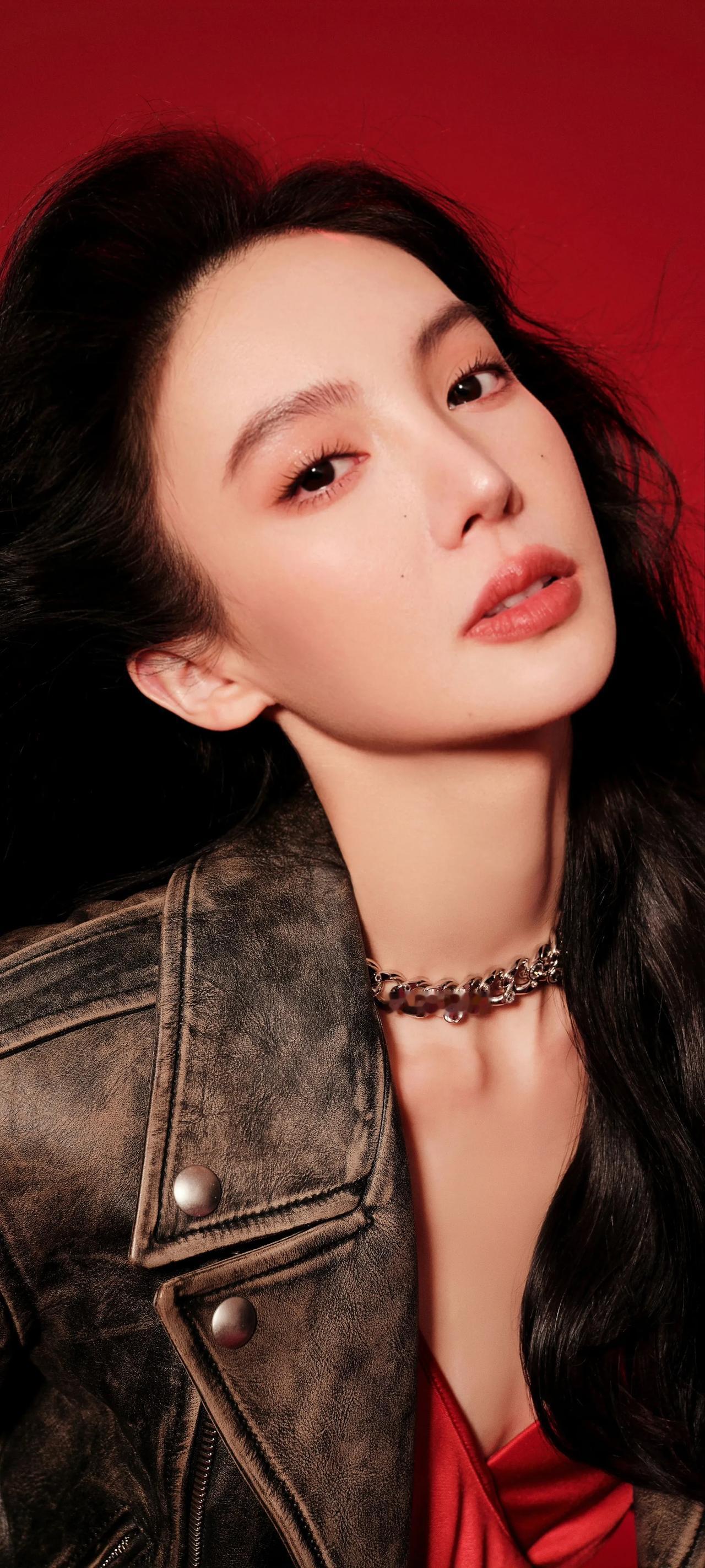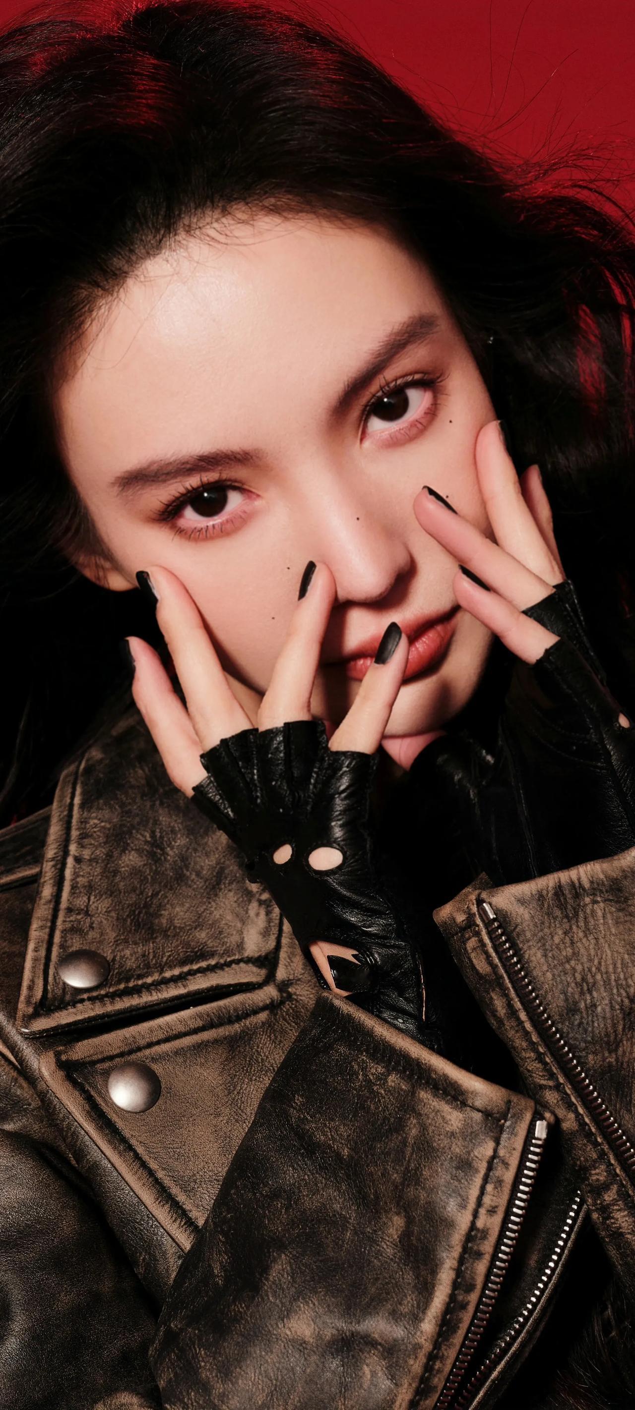 金晨高清壁纸,红衣卷发,机车皮衣,酷飒入新年。 金晨 娱乐