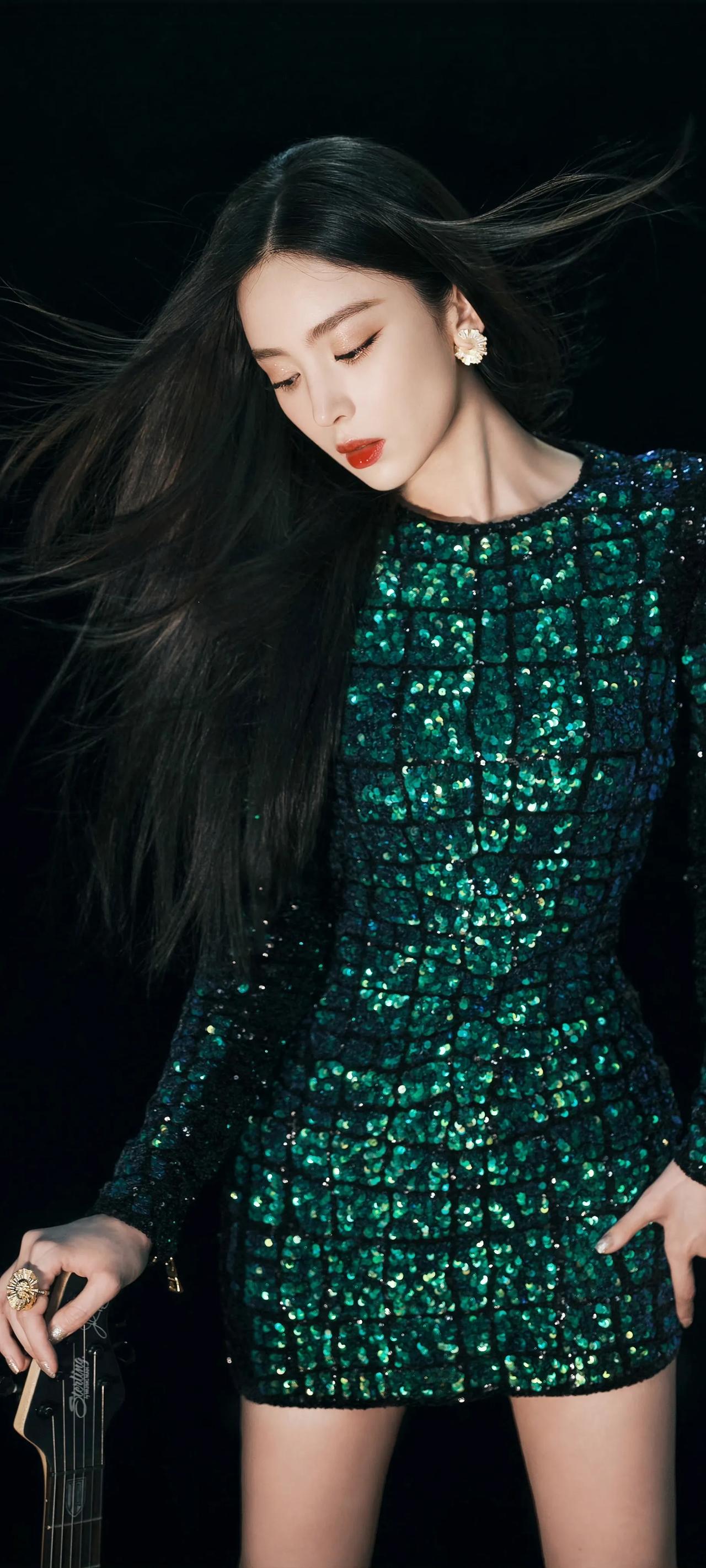 古力娜扎高清壁纸,绿色亮片裙展现出姣好的曲线,举手投足间带起纷飞的发丝,魅力感冲破屏幕了。 古力娜扎 娱乐
