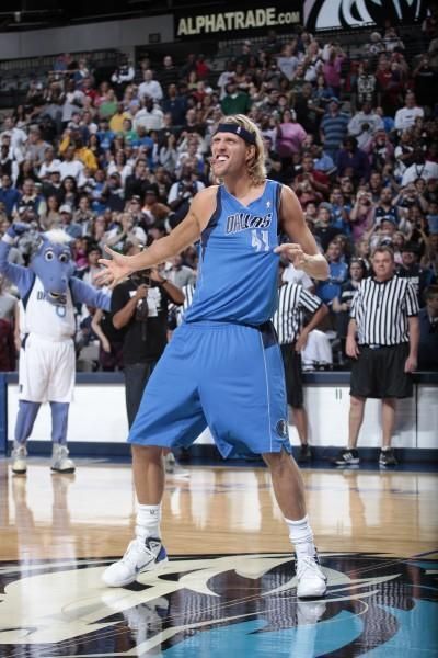 金发碧眼的诺维茨基,本应是NBA赛场上的优雅绅士。但当发带勒住他棱角分明的脸庞,配合标志性的"金鸡独立"后仰,瞬间从欧洲贵族变身街头混混。有记者在赛后采访时憋笑提问:"德克,你今天是不是误穿了队友的装备?"更绝的是,某次诺维茨基戴发带投进关键球后,转播镜头抓拍到他叉腰庆祝的画面,活脱脱一个"西部牛仔"造型。