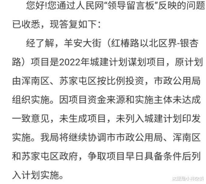 羊安大街项目最早于2022年列入苏家屯区城建计划,原计划2022年完工,但因资金及协调问题推迟。但是这段最终也是修了,而北段跟浑南区关系不太大的这段就耽误了很多年。