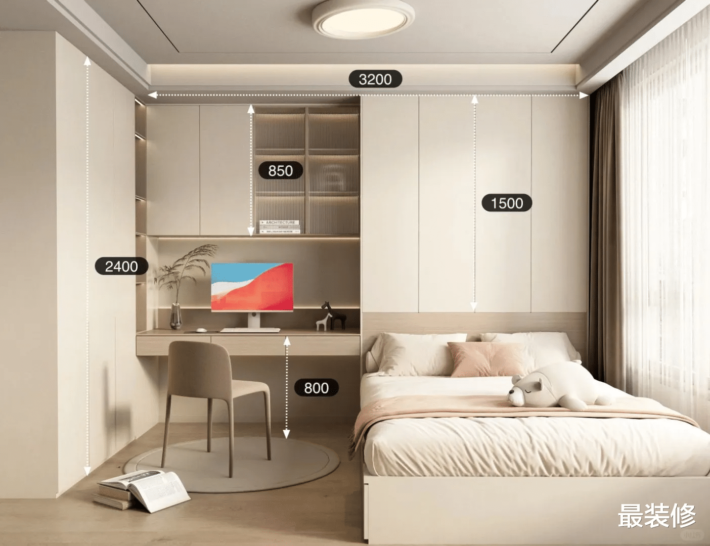 建议大家可以选择直接做定制的家具,按照房屋的尺寸选择家具,更能个性化设计,充分利用好家中的侧卧的小面积。