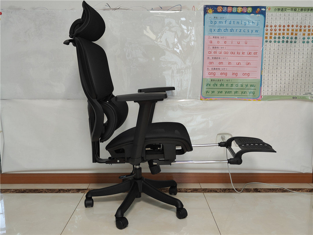 夏草木 Fit2 人体工学椅的外观设计简约而大气,带了一个脚托,头靠,功能齐全,黑色也很耐脏。