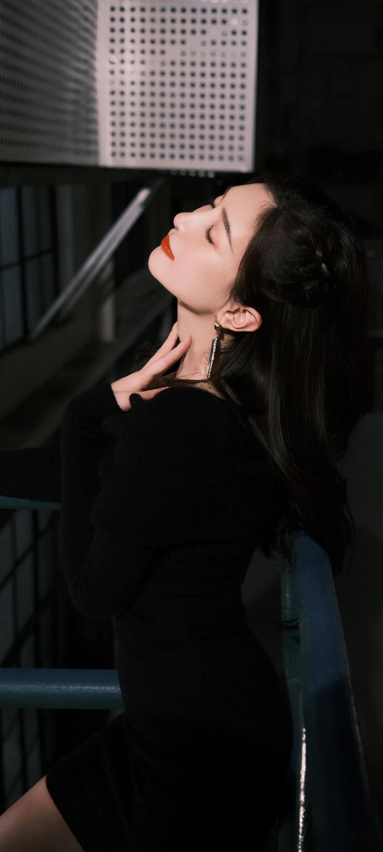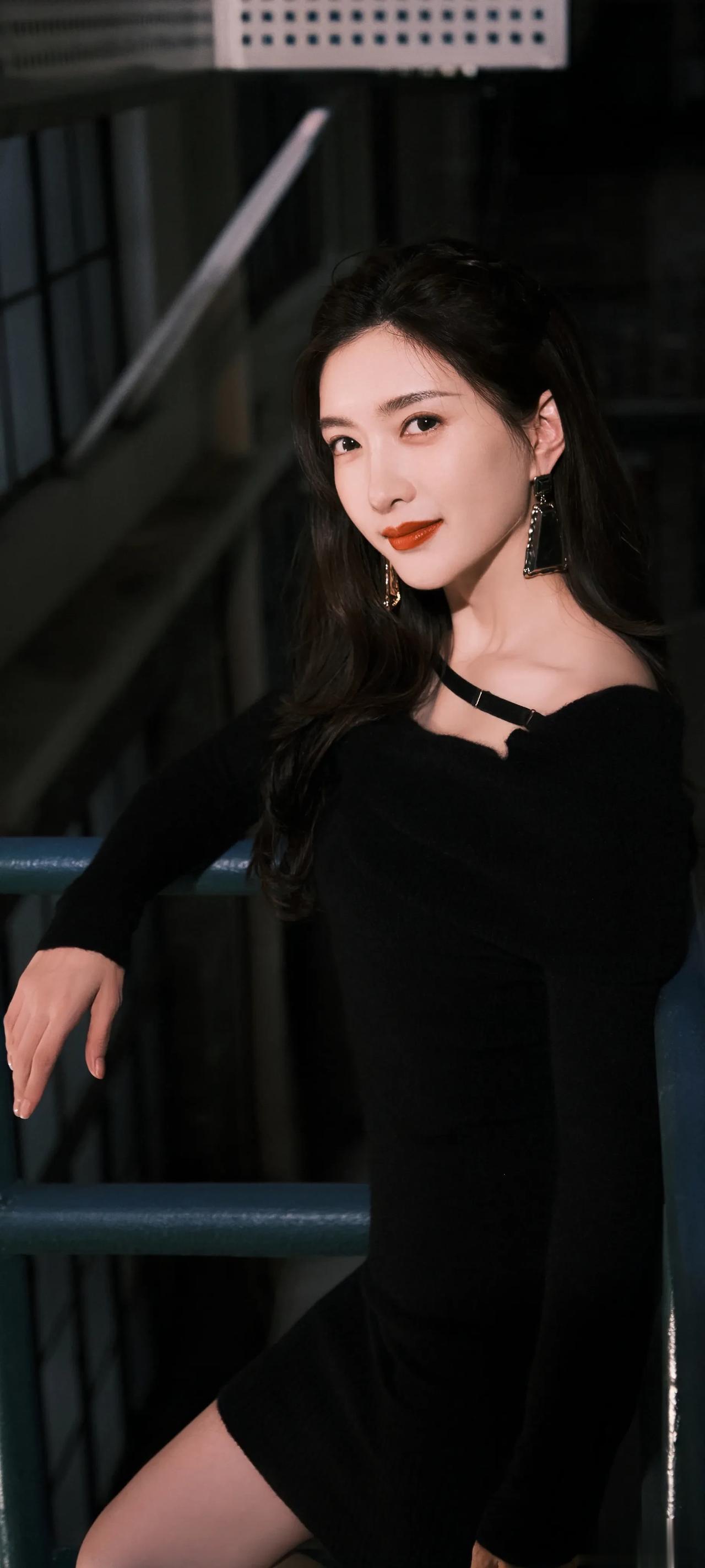 江疏影高清壁纸,身穿黑色连衣裙性感迷人。
