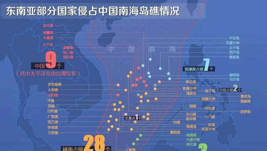 直至近代,工业化带来的巨量商品冲入全球各个角落,大陆开始从属于海洋与港口,在亚洲东部,大陆的发展开始被海洋驱动,一如千年前中原驱动沿海一样…二战之后,中国政府依据历史和法理,接收南海诸岛,与此同时,英法荷等殖民帝国从东南亚撤出后,众多国家纷纷建立或独立,南海岛屿成了他们的目标,越南、菲律宾为首,铤而走险,抢占岛礁……时至今日。这成了南海最重要的地区问题,域外野心家当然了解这一切,南海周边遍布的美国军事基地,以及菲律宾的各种蜜汁操作,虽无法影响全局,但恶劣之极…