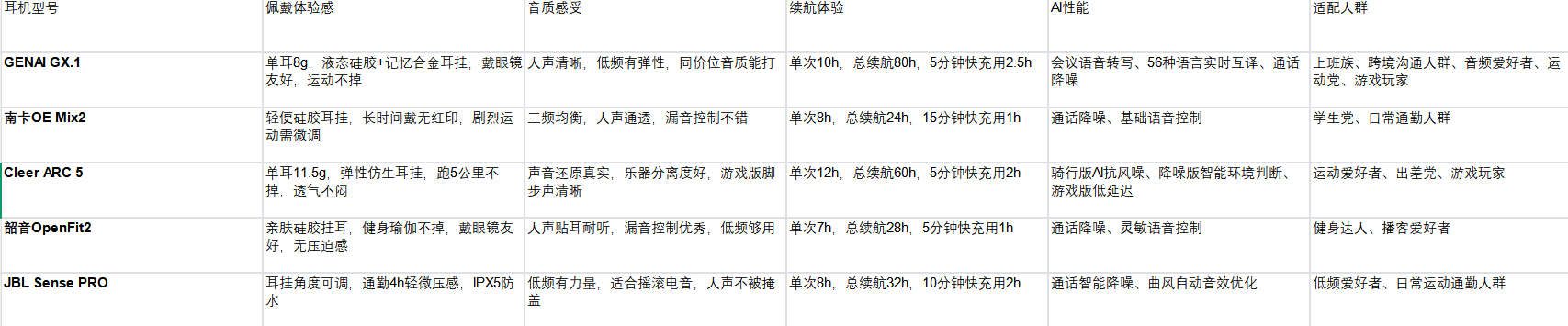 我也整理了一些耳机适合什么人群,以便能快速找到适合自己的开放式耳机: