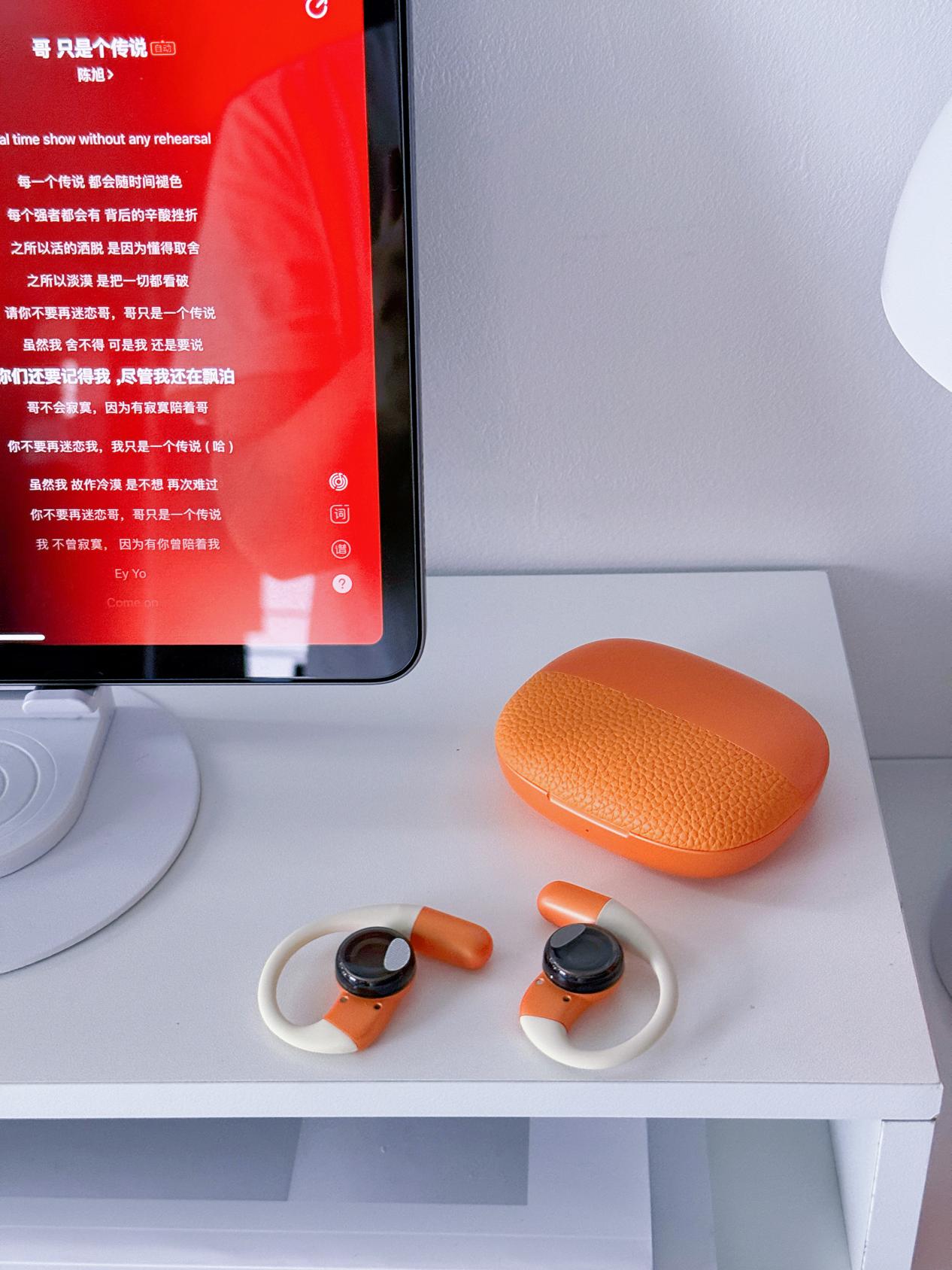 佩戴体验感:耳挂是软乎乎的硅胶材质,贴耳朵不硌人。实测连续戴4小时自习,摘下来耳廓没红印。运动的时候也稳,慢跑、快走都不会晃,就是剧烈运动比如跳绳的话,偶尔会有点移位,需要微调。