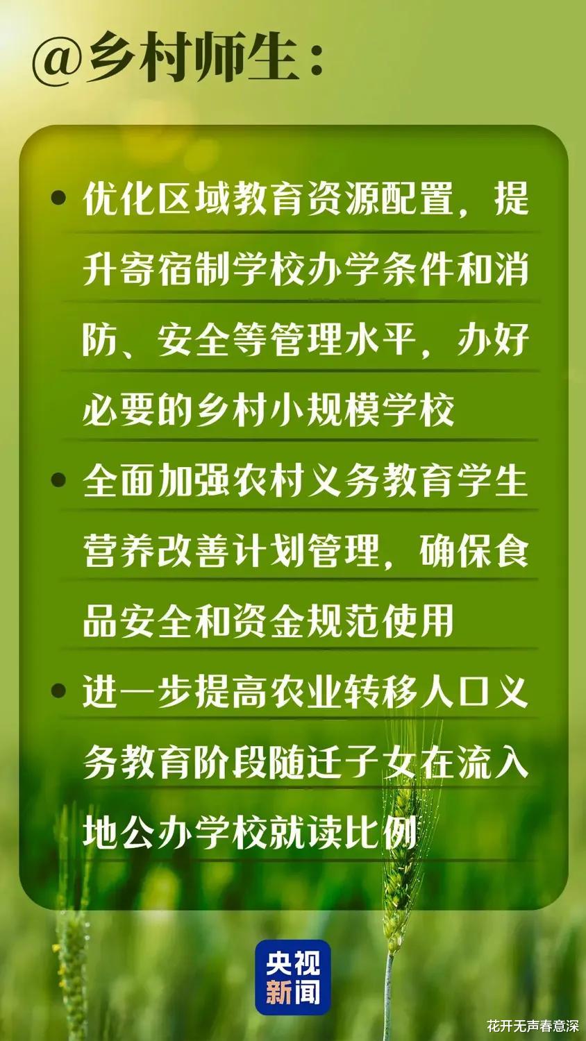 再有针对乡村学校的老师和学生,大家都知道这些年很多的农村学校不是关门就是合并,乡村老师的教育资源短缺,学生数量流失也非常的厉害,甚至有很多的农村学校全校加在一起,才几十个人甚至更少,在这次一号文件里面将会优化区域教育资源配置,提升寄宿制学校的办学条件和消防安全管理,办好必要的乡村小规模学校,同时加强营养改善计划管理,确保食品安全和资金的规范使用。