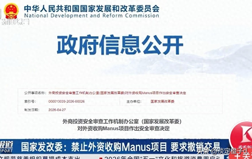 但转折发生在2025年。美国人工智能巨头Meta以20亿美元收购中国AI初创公司Manus,触动了中国监管层的神经。Manus的核心技术涉及自主决策AI,被视为具有战略价值。这笔交易让北京意识到:如果放任美国资本控股关键技术企业,国家安全或将面临长期隐患。